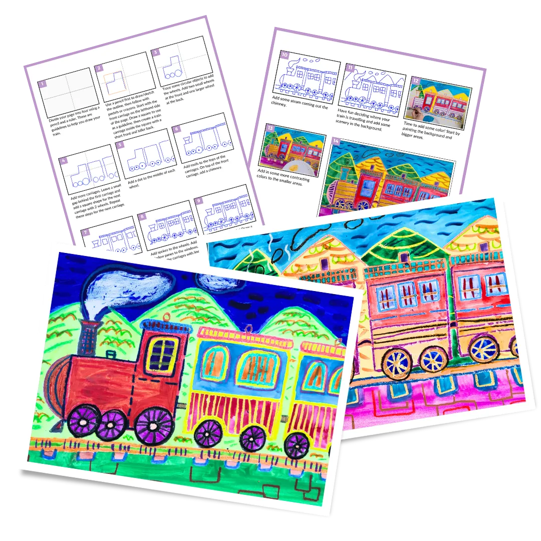Grab a FREE step-by-step video tutorial and instruction template to create an artwork with your kids at home!